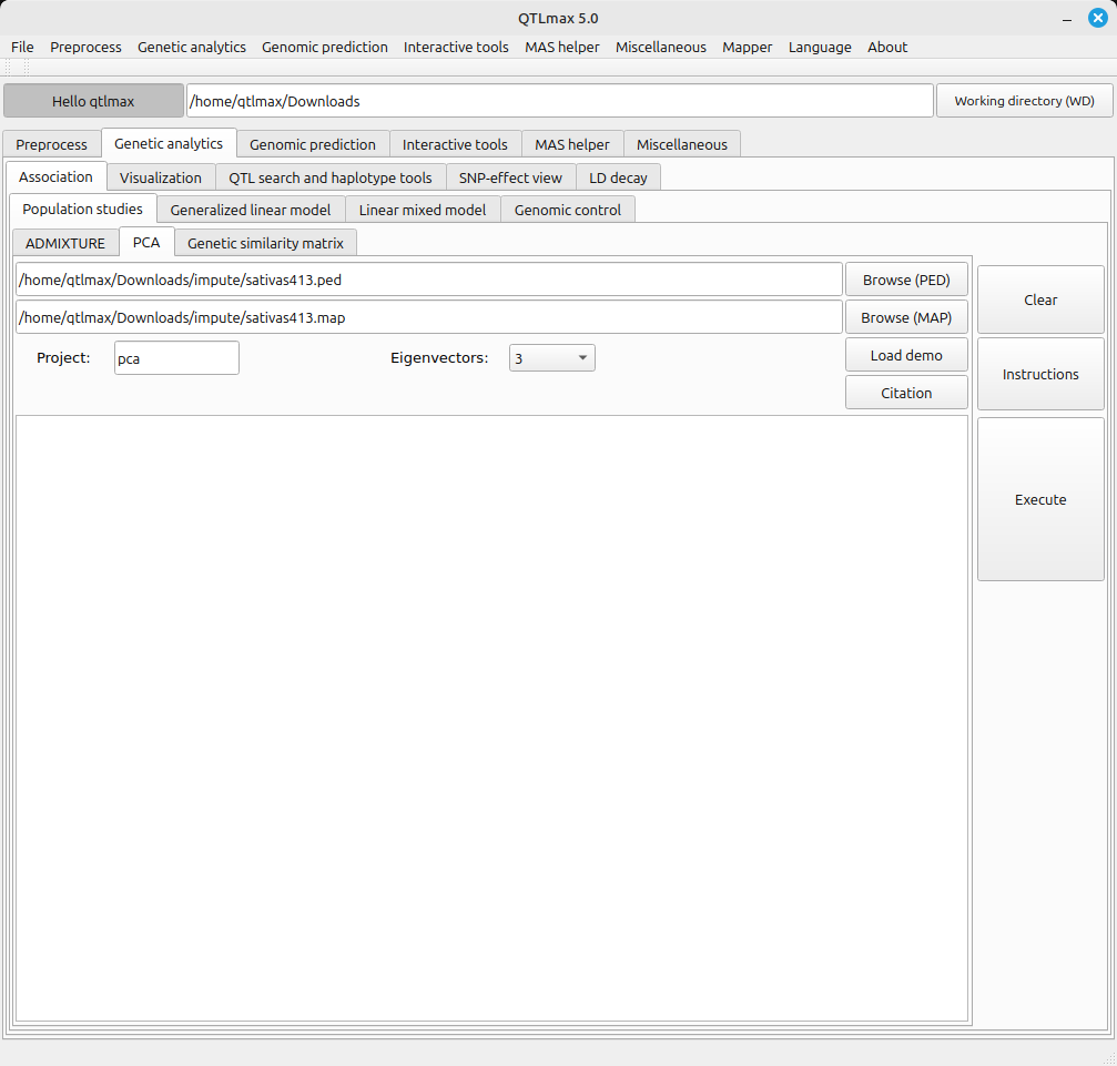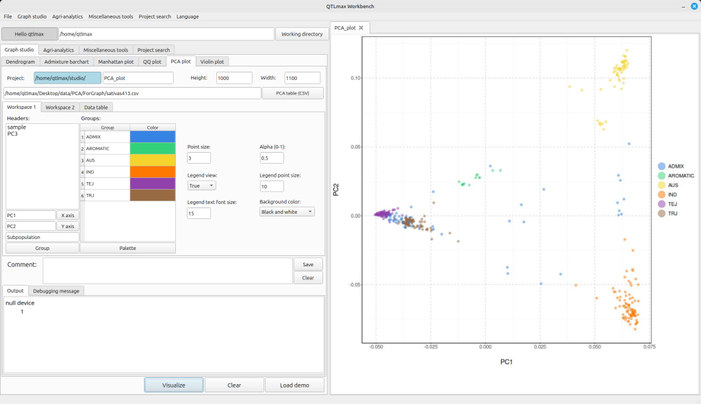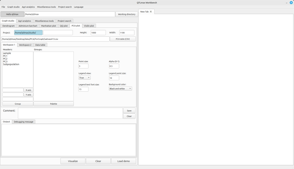 Figure 6 shows the PCA plot tab page selected in QTLmax Workbench. This tab page has many setting options. If you don’t want to select each setting option individually, just click the [Load demo] button. You’ll see most of the setting options are configured automatically.