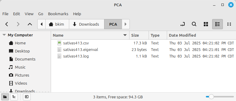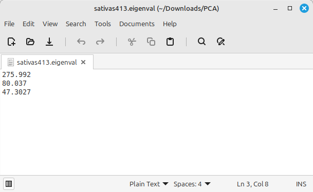 Figure 4 shows the contents of the file (*.eigenval) that displays the eigenvalue corresponding to the Principal Components (PC1, PC2, etc.).