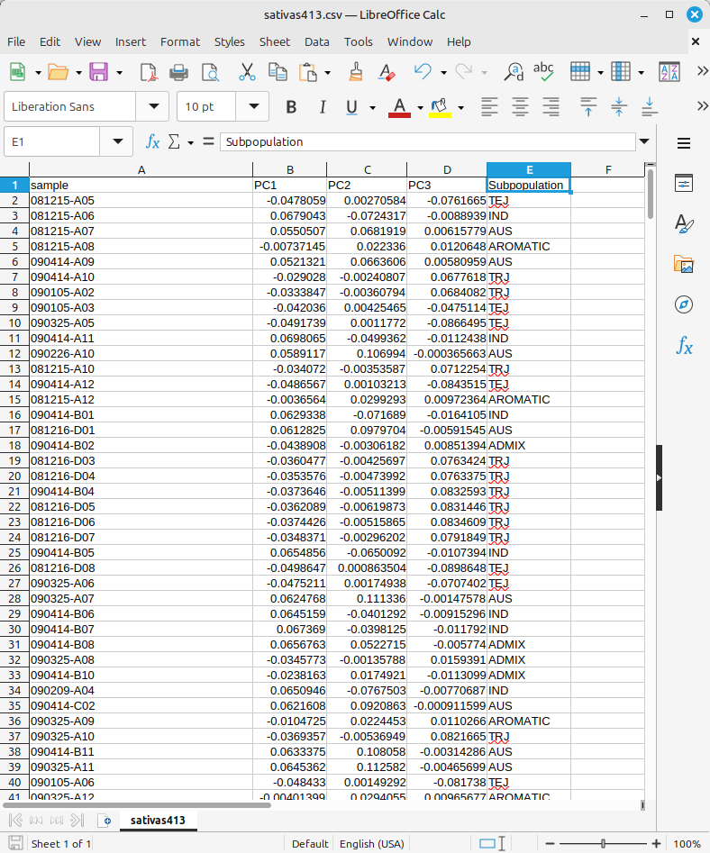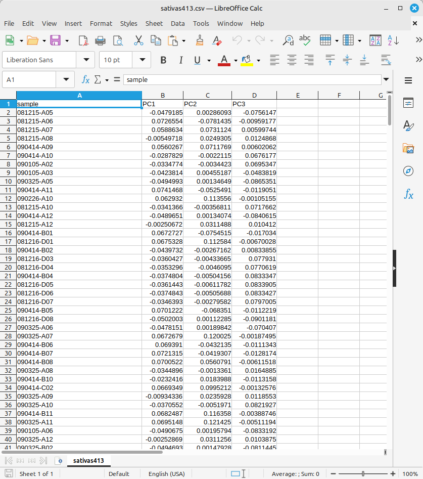 Figure 3 shows the contents of the PCA result file (.CSV). Each column labeled as PC1, PC2, PC3, etc., is referred to as a Principal Component.