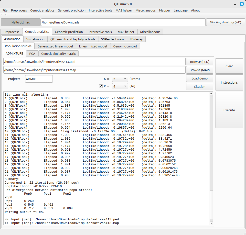 Figure 2 shows the admixture analysis completed. You can see the relevant messages displayed.