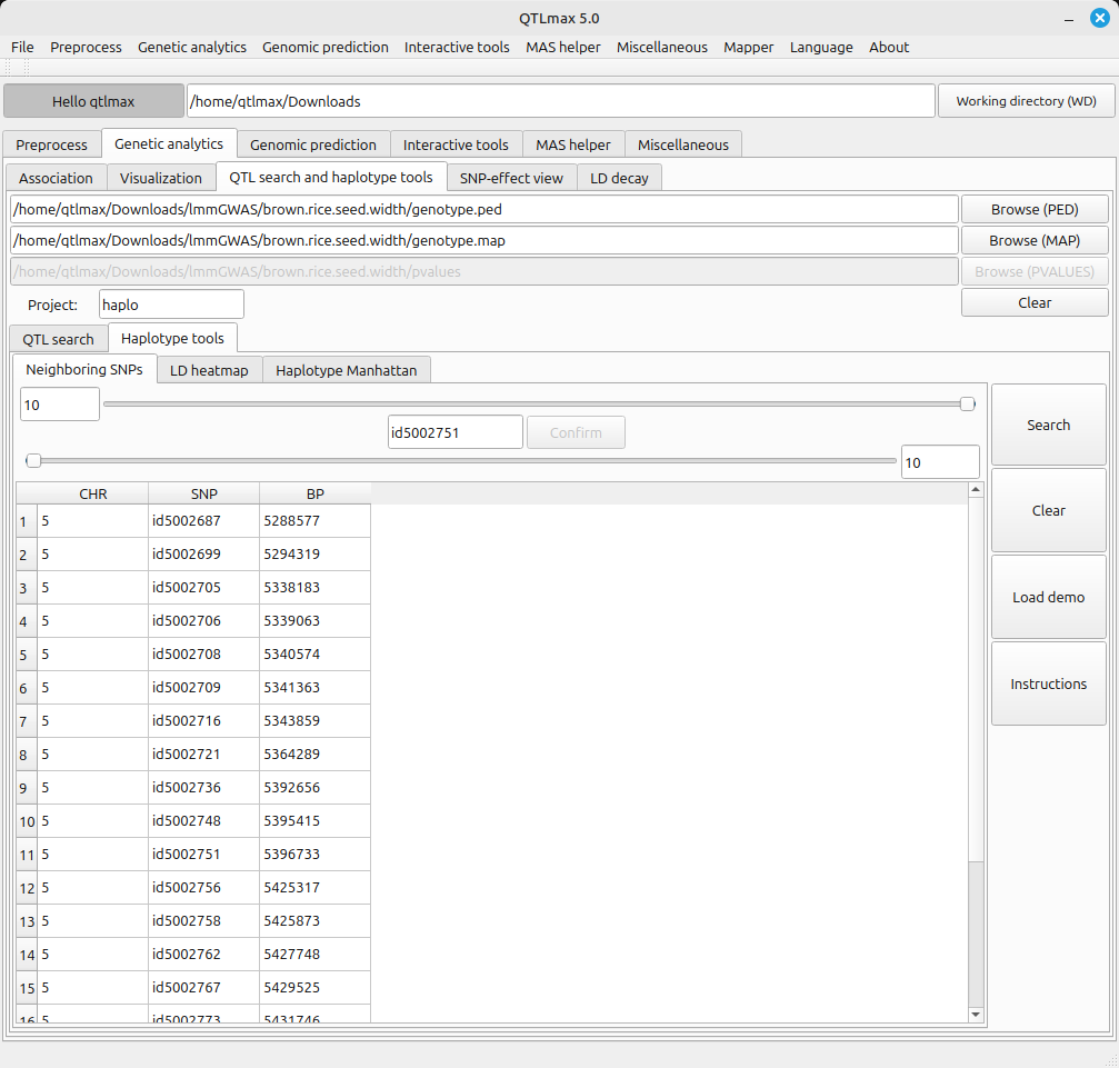 As you move the scroll bar, you’ll see the number in the text box at the end of the scroll bar change. This number indicates the position of the selected marker relative to your chosen marker. For example, if the number displayed at the left end is 10, it means the start point of the genome window is the 10th SNP marker to the left of the entered SNP (id5002751). Similarly, if the number displayed at the right end is 10, it means the end point of the genome window is the 10th SNP marker to the right of the entered SNP (id5002751).