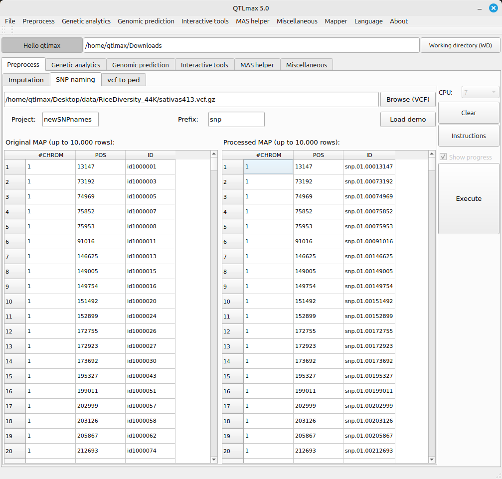 Figure 2 shows the completion of the “SNP naming” task. The left table displays the original names of the SNPs, while the right table shows the newly assigned SNP names.