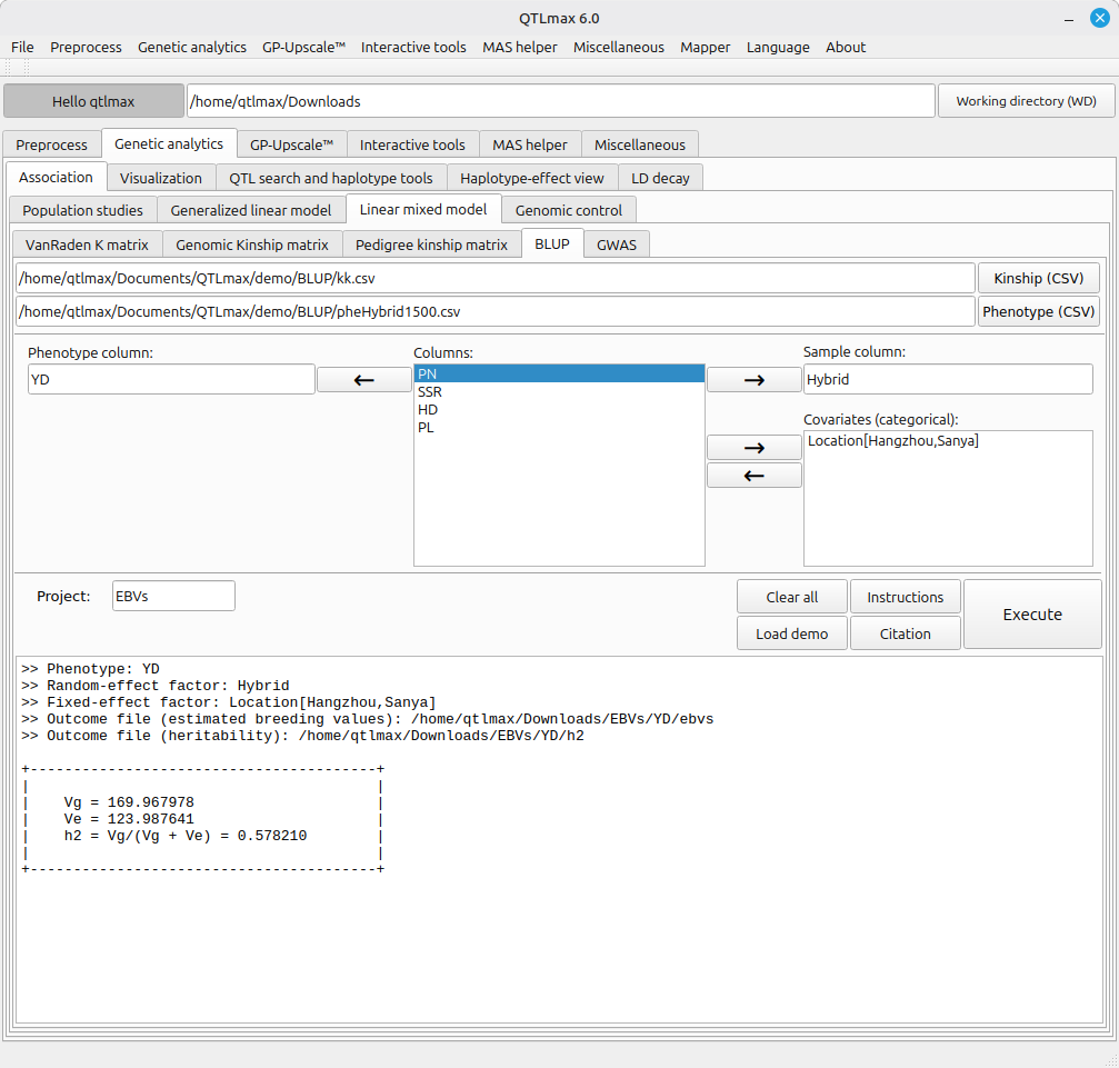 After completing all settings, click the [Execute] button to start the BLUP calculation. Figure 2 shows the appearance.