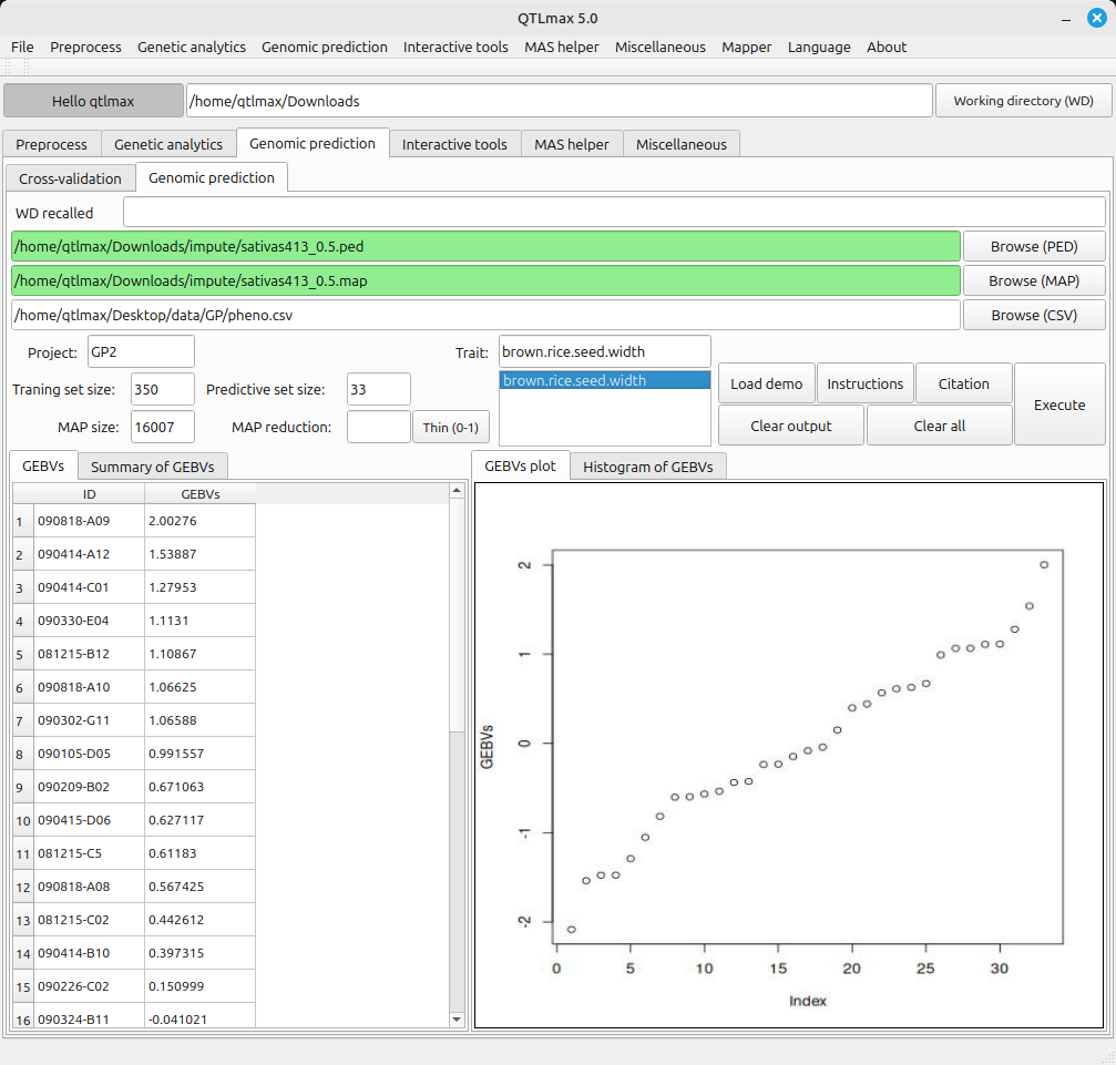 - GEBVs Plot: Displays a plot showing the sorted GEBVs results.