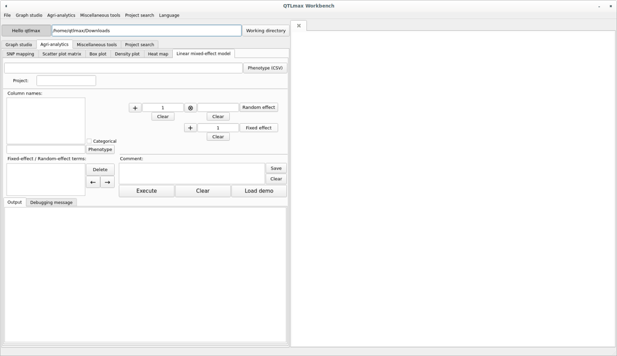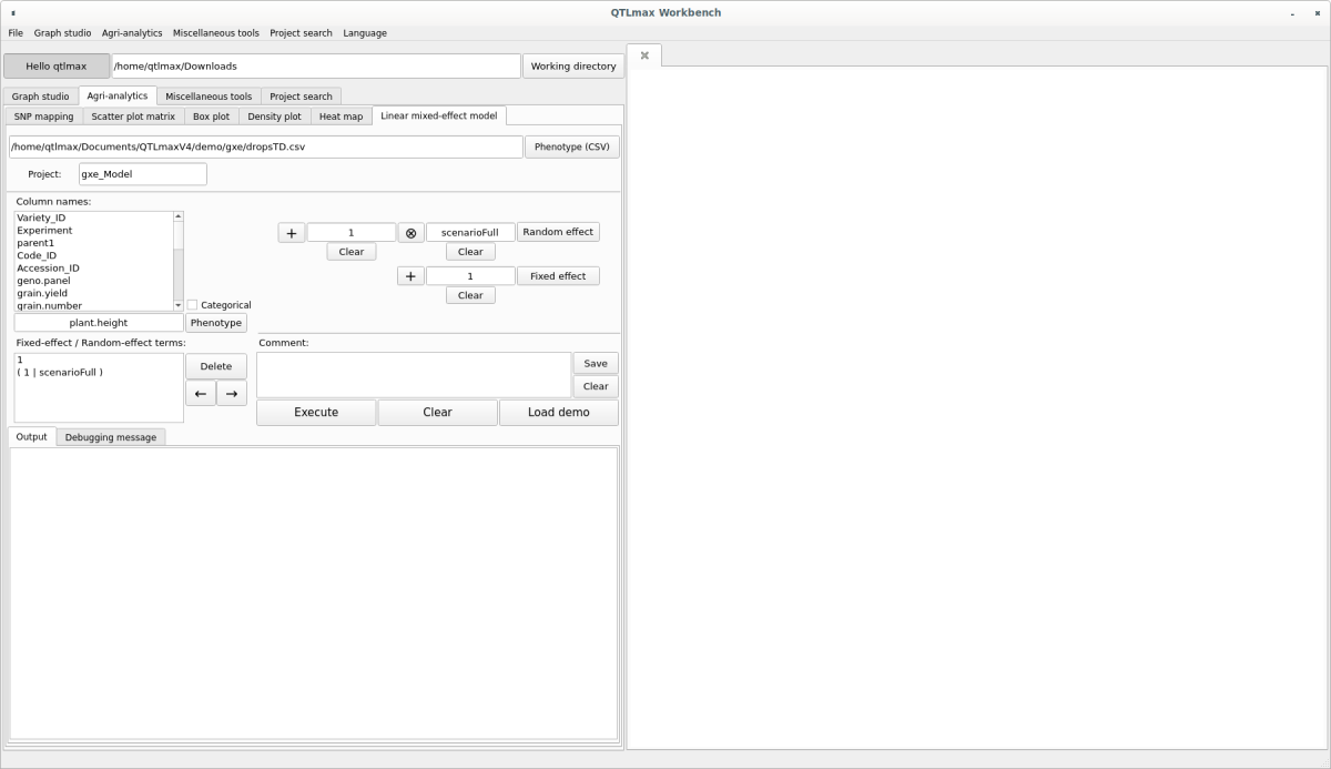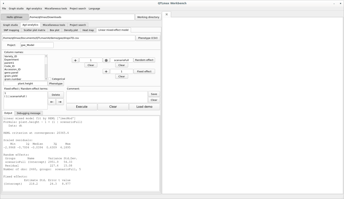 Figure 1 shows the “Linear mixed-effect model” tab page selected within QTLmax Workbench.