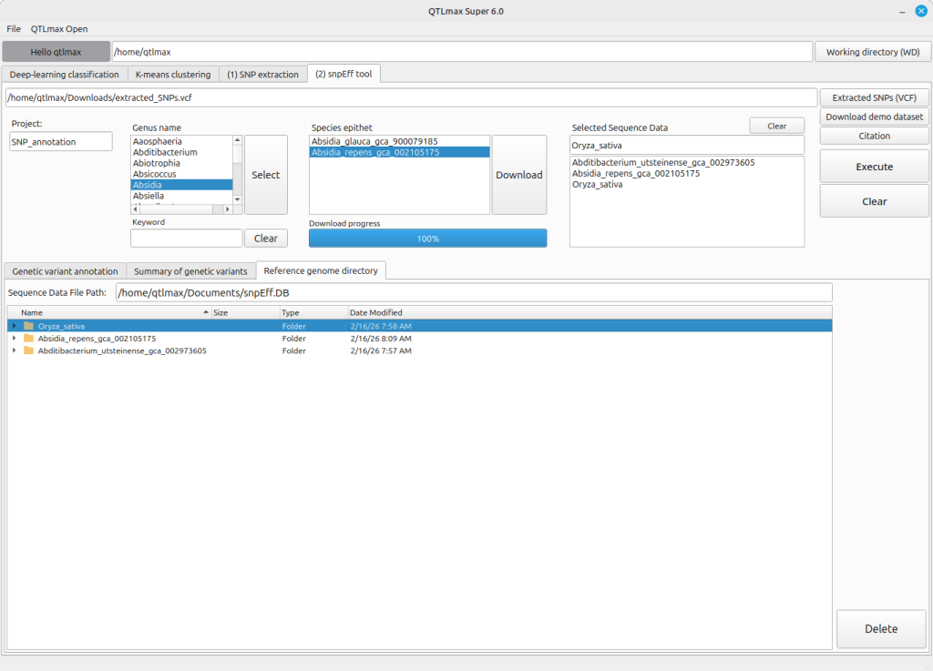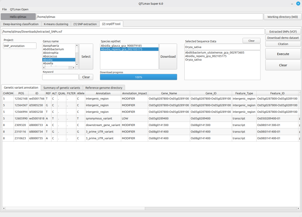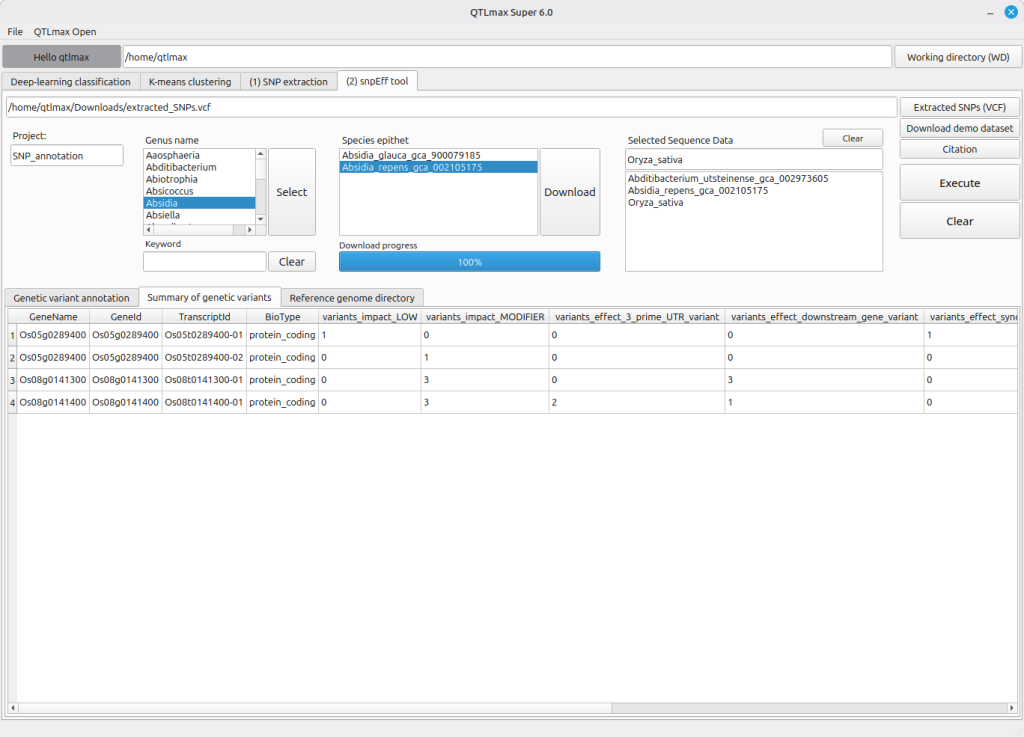 The genetic variant annotation features are available in QTLmax Super and require the following two steps:
